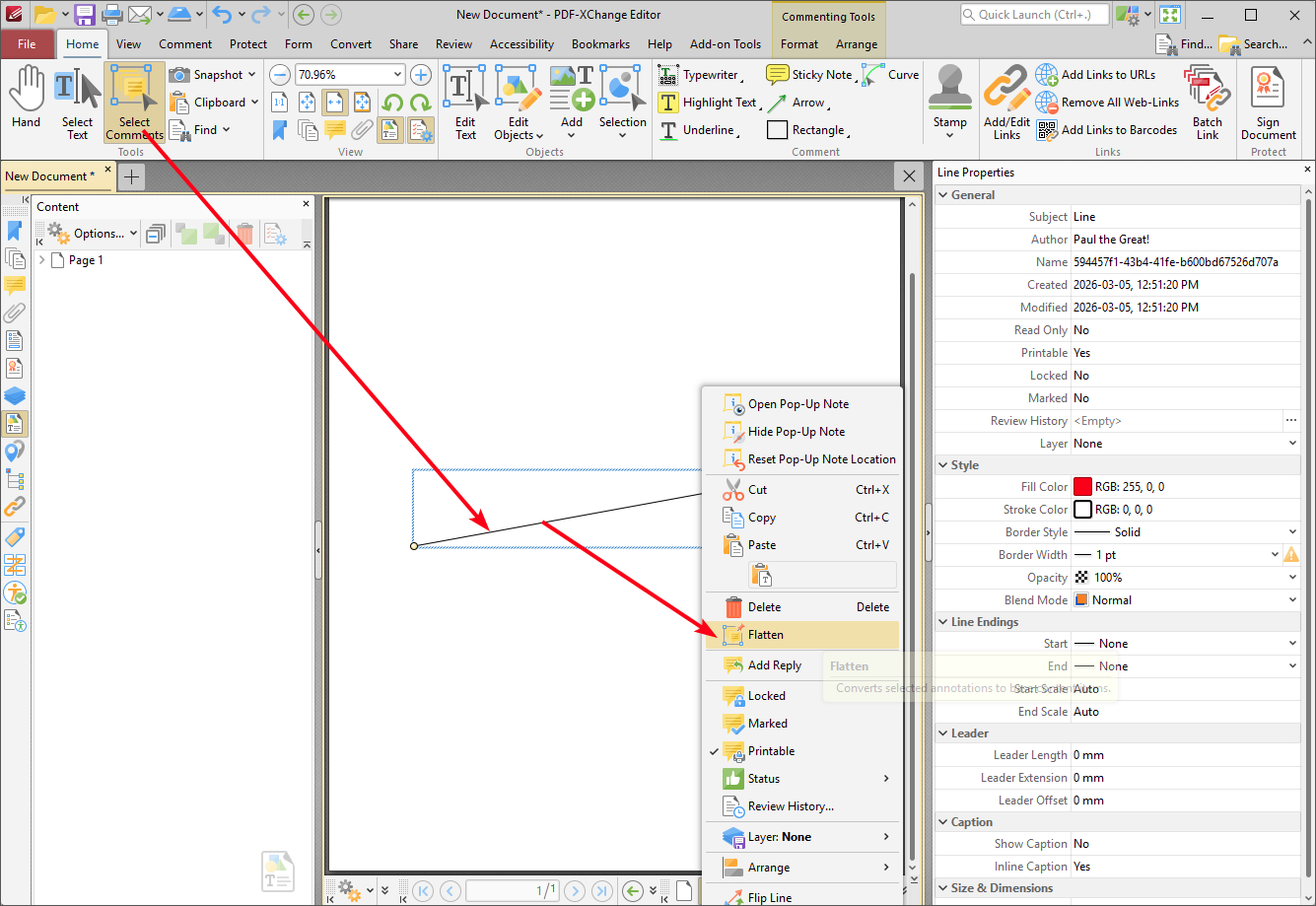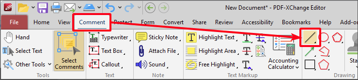 I created a line using the commenting tools but can't find a wat to add a curve.